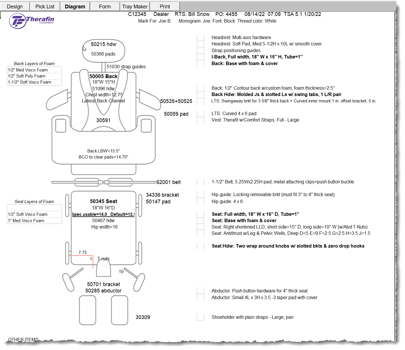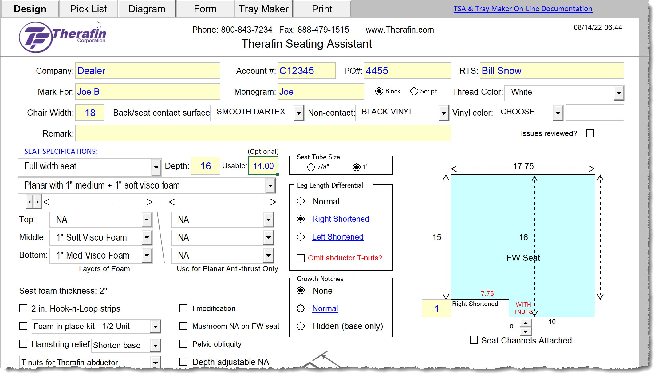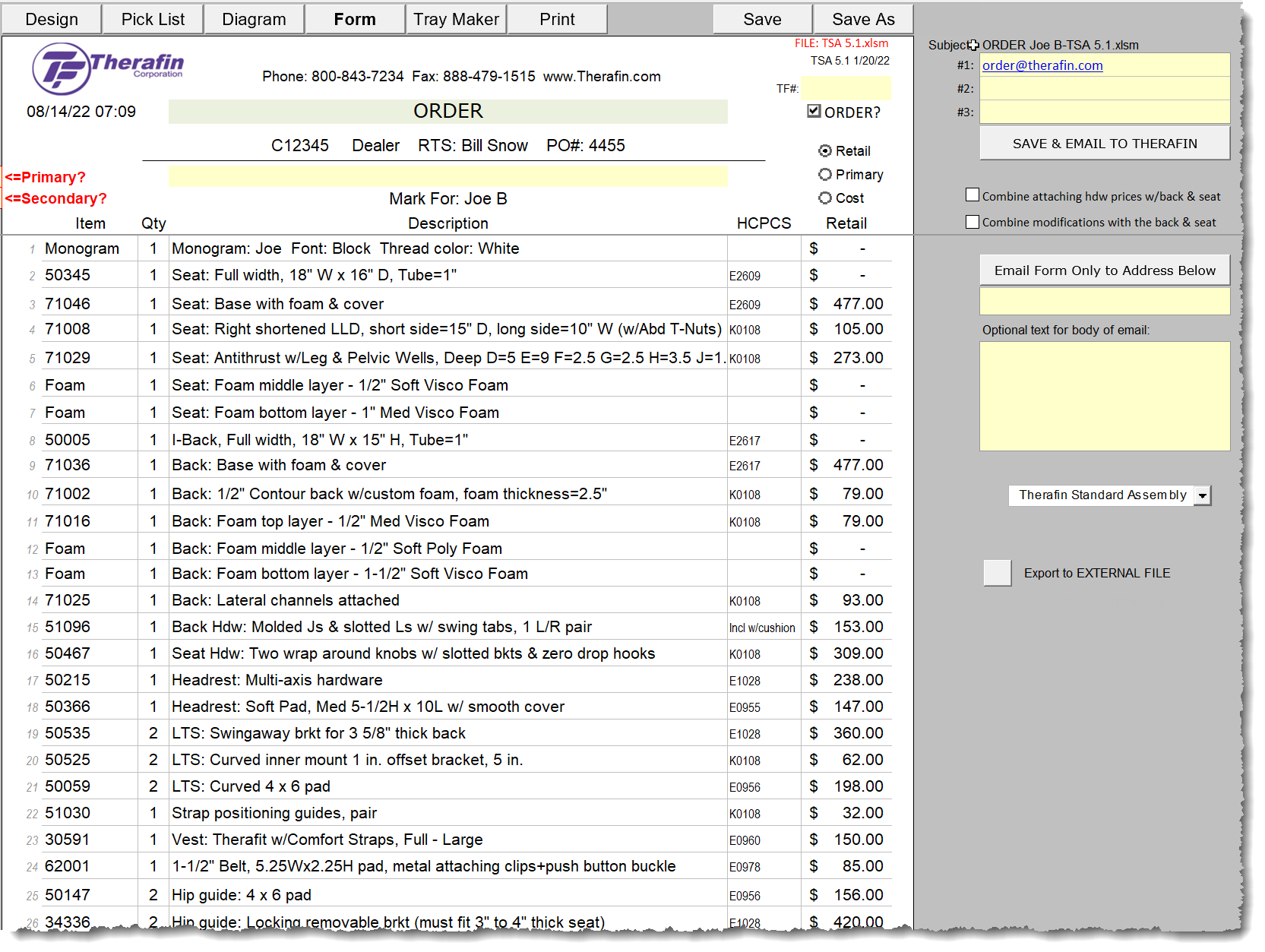 The Therafin Seating Assistant (TSA) is a Microsoft Excel tool that allows you to configure, quote and order custom seating systems including all the necessary accessories without knowing a single part number. You download the tool upon your workstation so no internet connection is needed until you want to order the system via an automated email process.